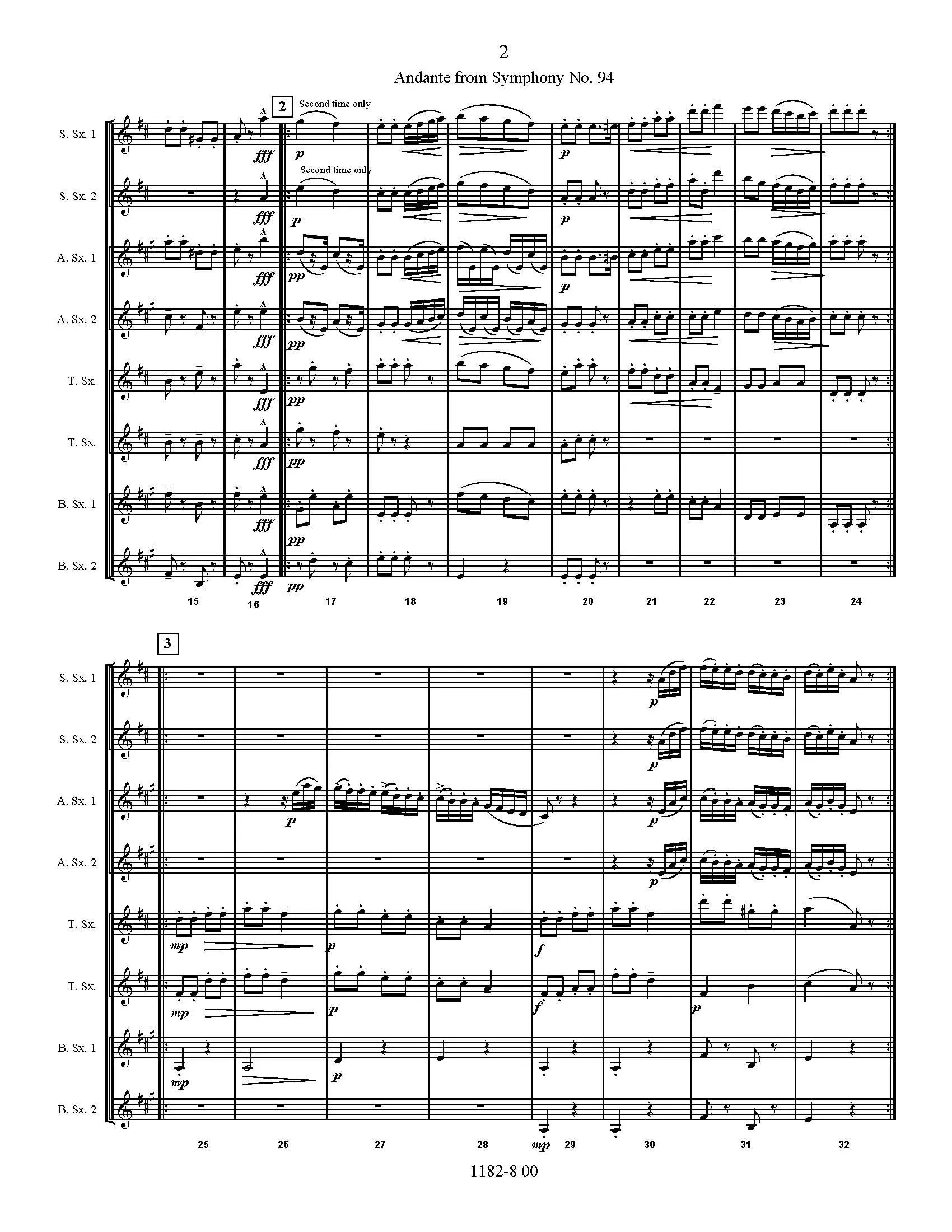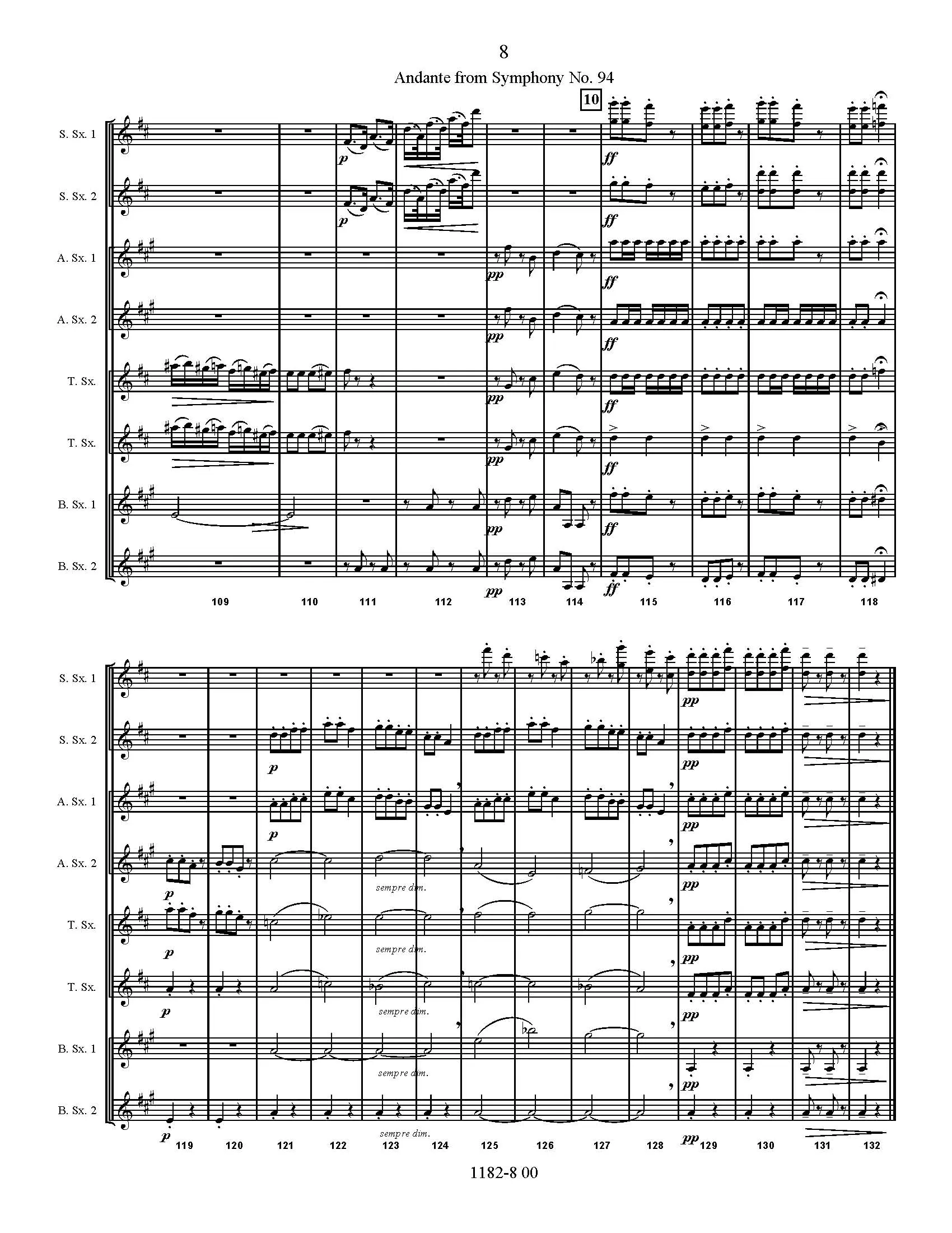 Andante from the Surprise Symphony No. 94 by Haydn for Saxophone Octet or saxophone choir.