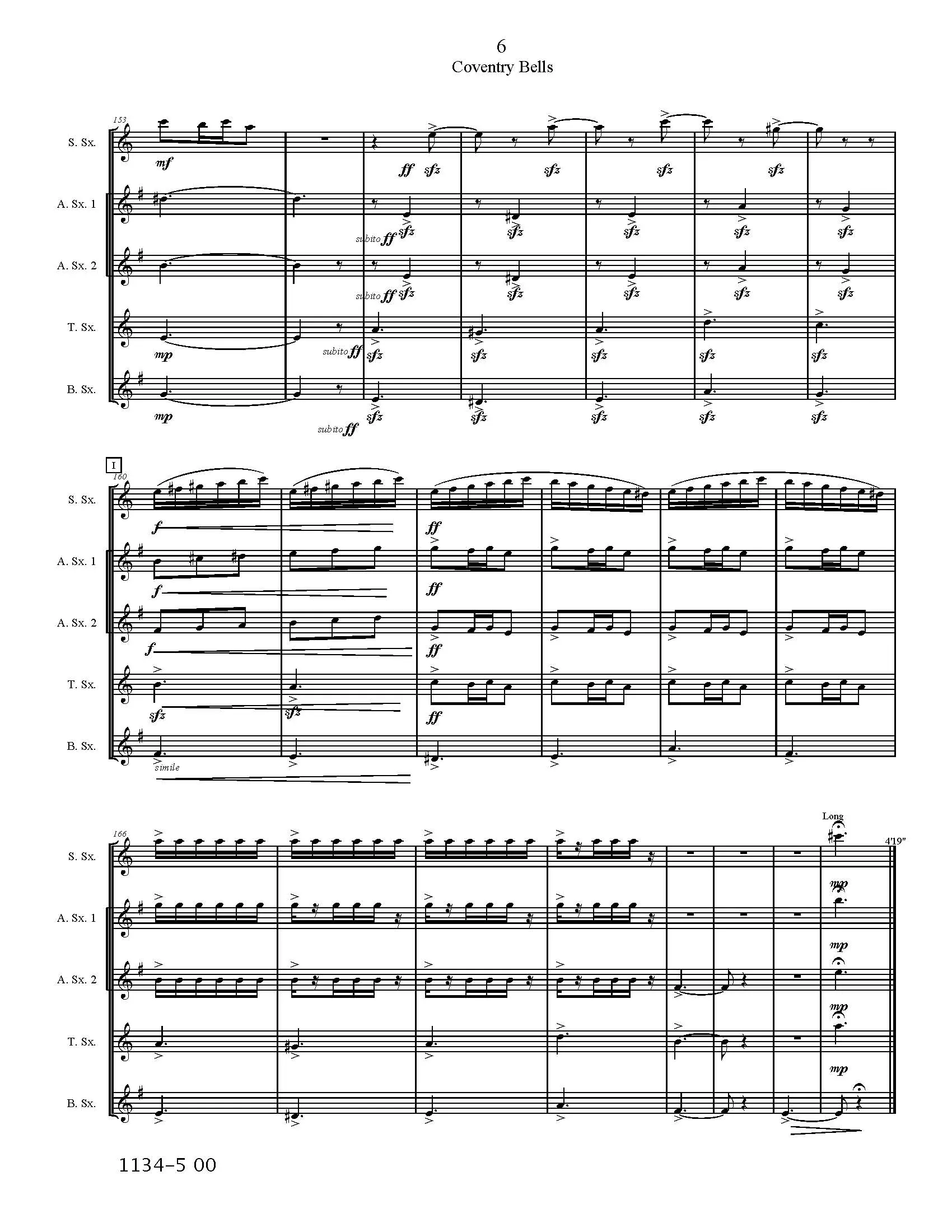 Alto 1 through Bari parts are relatively simple while the soprano part presents some technical challenges. No altissimo is required but the full range of the horn is used.