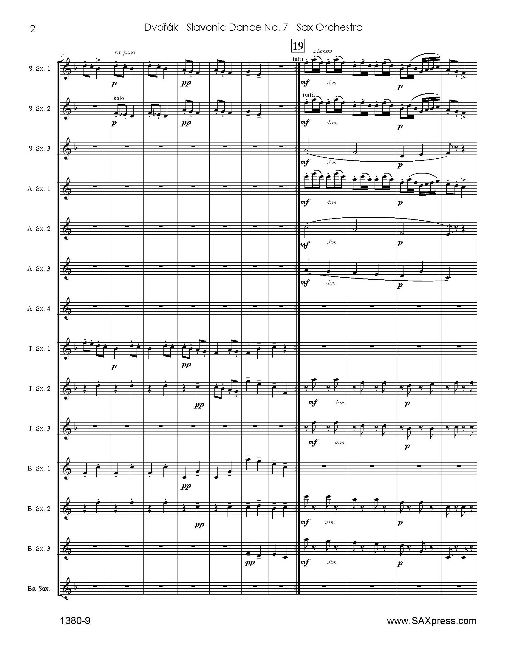 Slavonic Dance No. 7 by Antonin Dvorak arranged for Saxophone Orchestra. Arranged by Thomas ZinningerDr. Thomas Zinninger