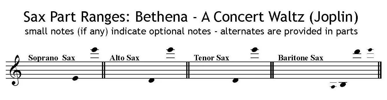 Saxophone Part Ranges for Bethena – A Concert Waltz