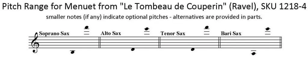 - The range for each saxophone part is shown below.