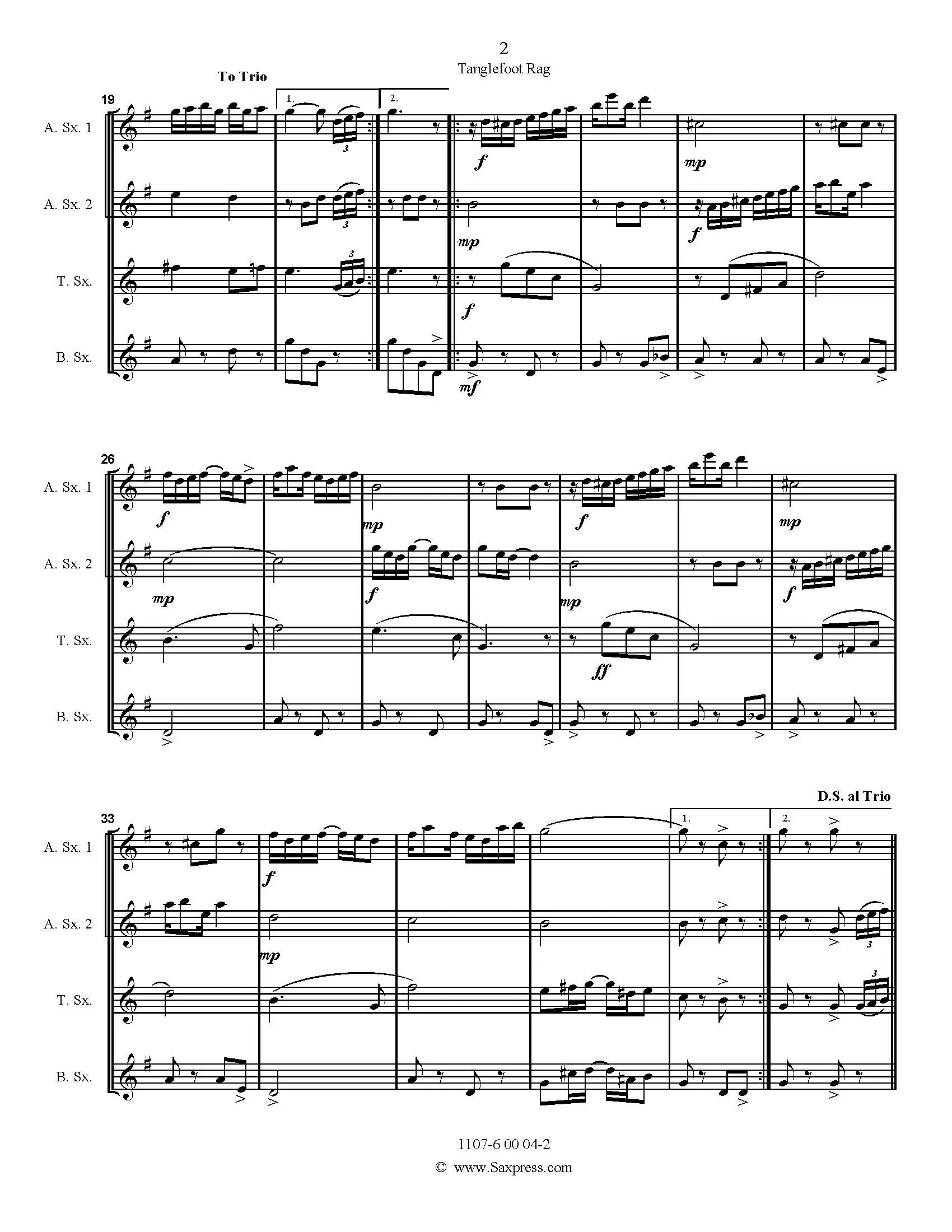 - Registered users can download a complete sample score and full length audio file of Tanglefoot Rag.