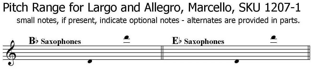 - The range for each saxophone part is shown below.