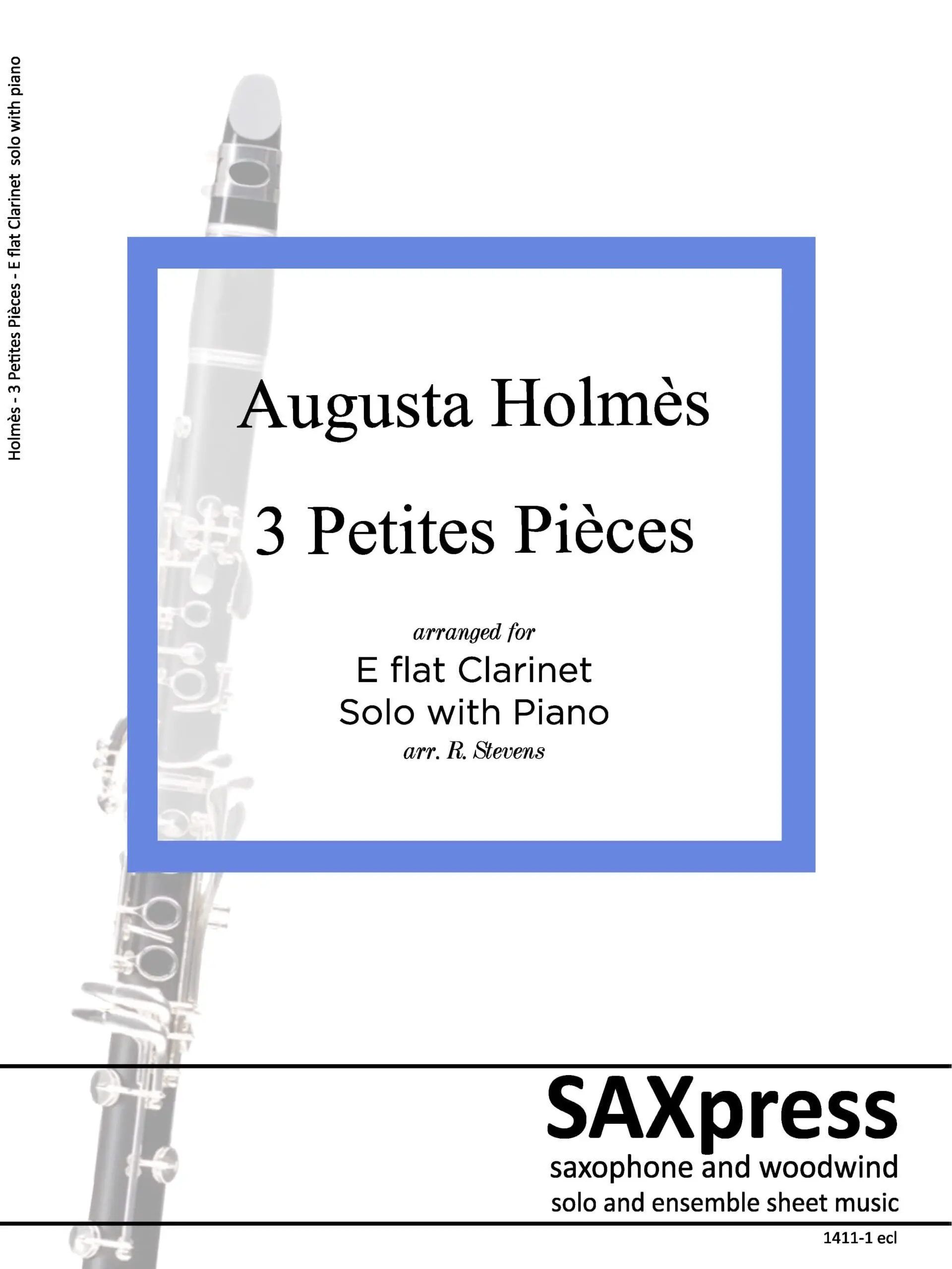 Three Little Pieces (Trois petites pièces) by Augusta Holmès arranged for E flat Clarinet solo with Piano (originally for flute with piano). This set of three short pieces shows Holmès’ fondness for popular music. It pays homage to her Irish heritage in its inspired use of Irish rhythms. Each piece can stand on its own but due to their contrasting character, they make a very nice little suite when programmed together.